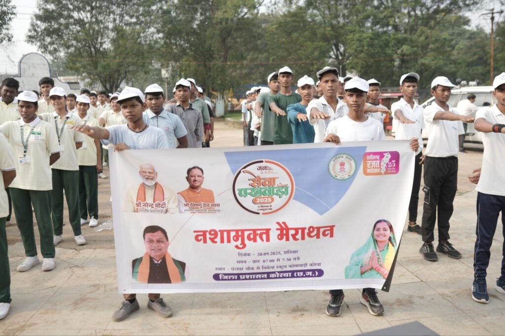 कोरबा 20 सितंबर 2025 : सेवा पखवाड़ा दिवस अंतर्गत समाज कल्याण विभाग द्वारा नशामुक्ति मैराथन का आयोजन किया गया। मुख्य अतिथि श्रीमती संजू देवी राजपूत महापौर नगर पालिक निगम की उपस्थिति में घंटाघर निहारिका से निर्मला स्कूल कोसाबाडी कोरबा तक मैराथन का आयोजन किया गया ।